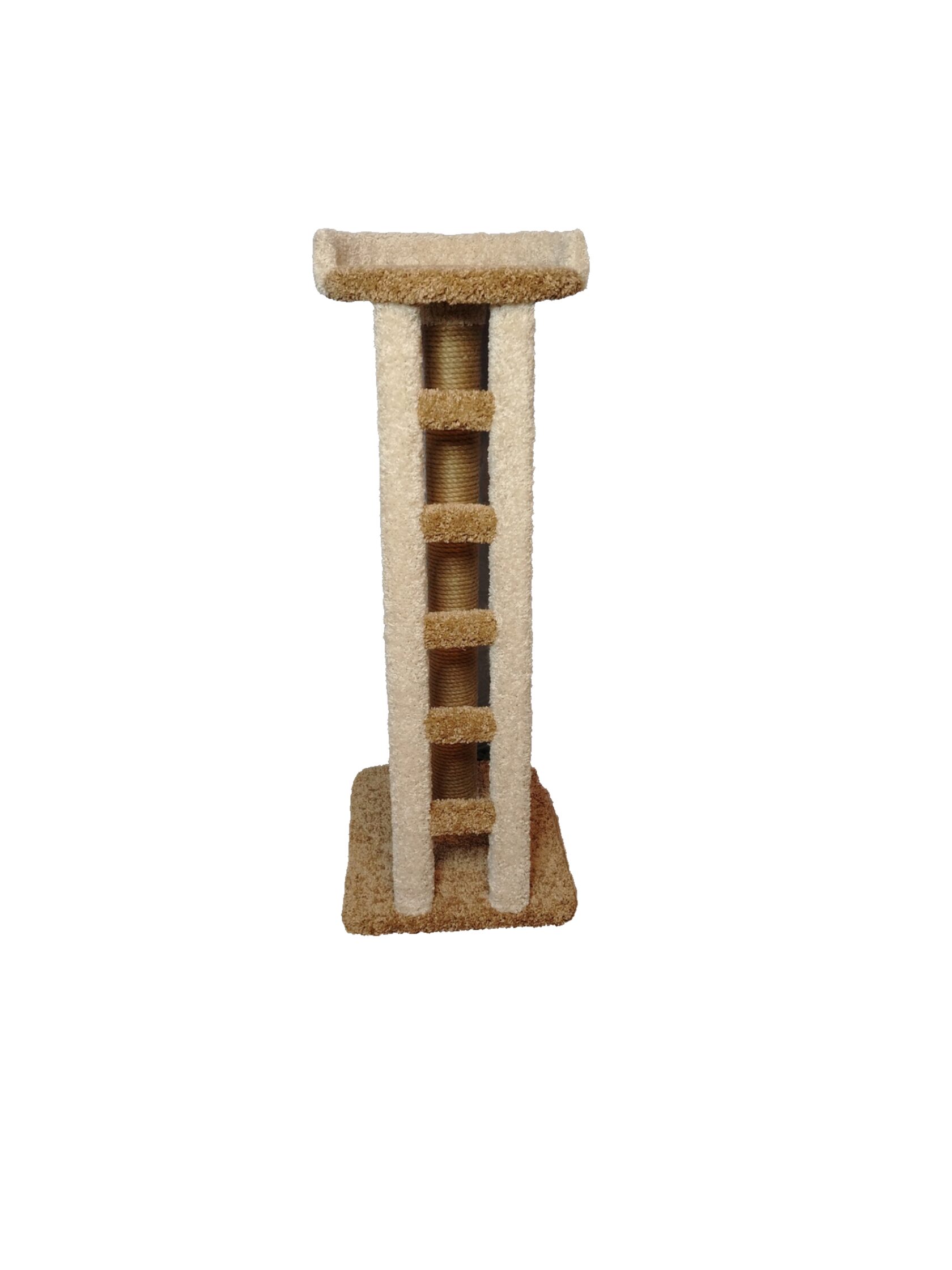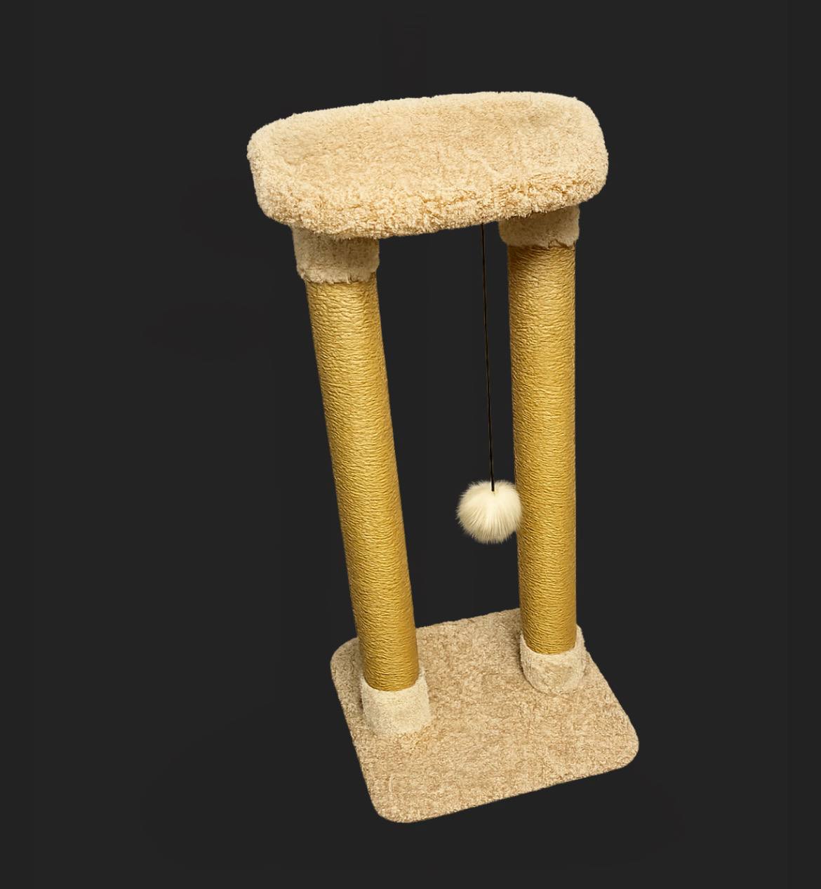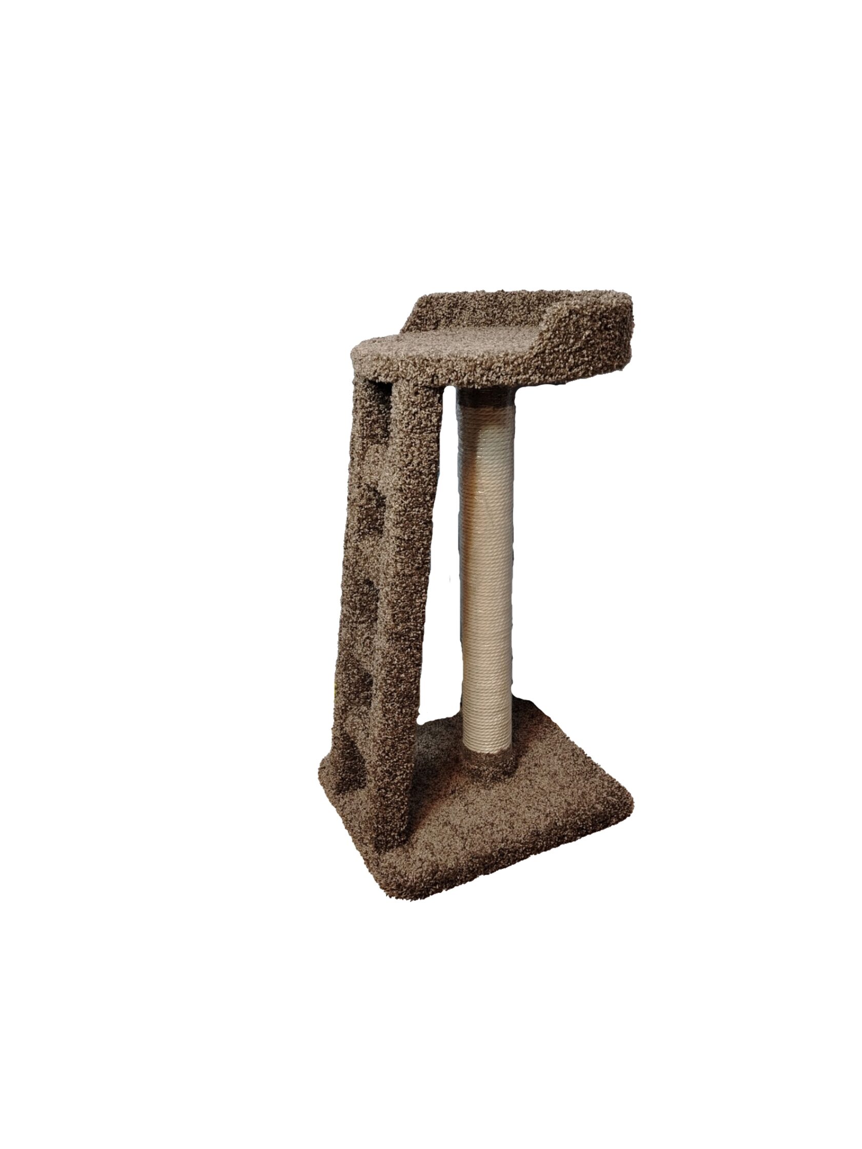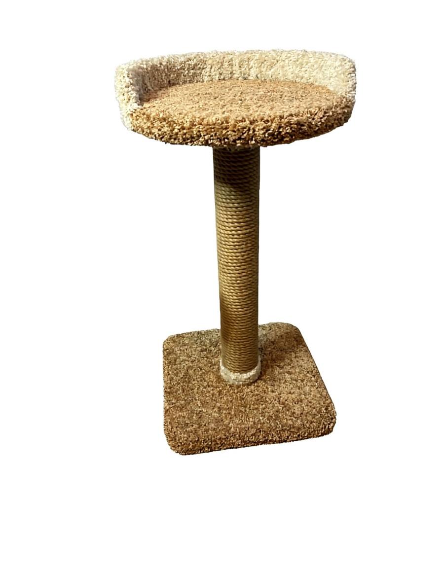Когтеточка выполнена с одним столбиком, лесенкой и лежанкой с бортиком. Благодаря лесенке, ваш питомец без труда заберется на лежанку, где сможет с удовольствием отдохнуть или с важным видом осмотреть владения. Благодаря бортику, ваш любимчик не упадет во сне. Цвет ковролина и материал каната можно выбрать в момент оформления заказа.