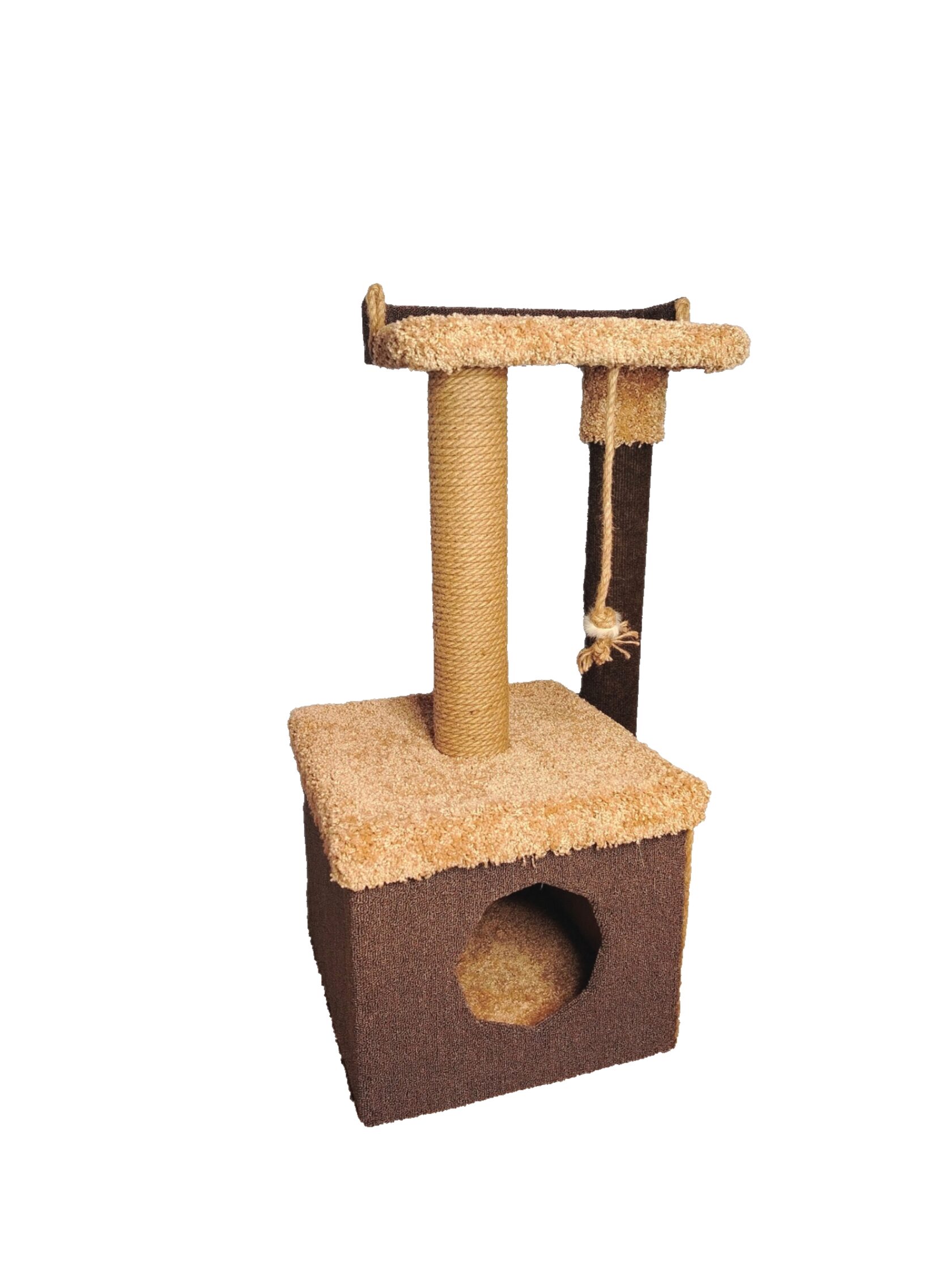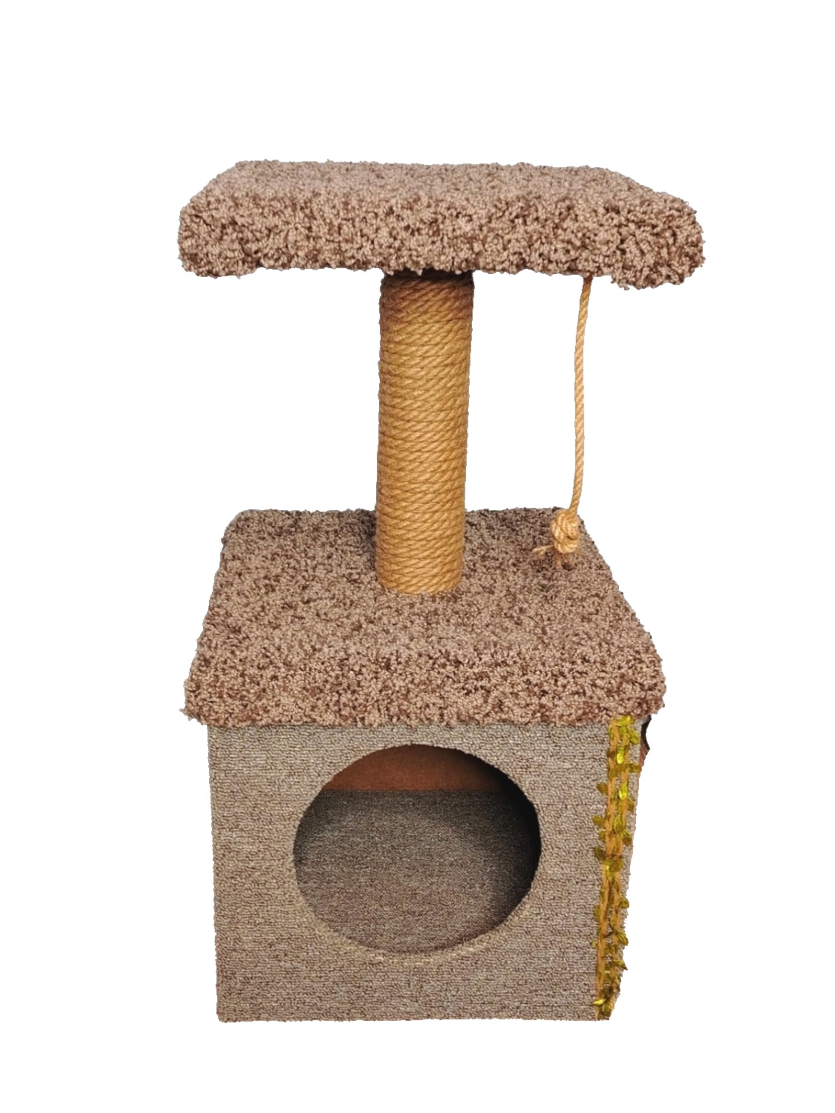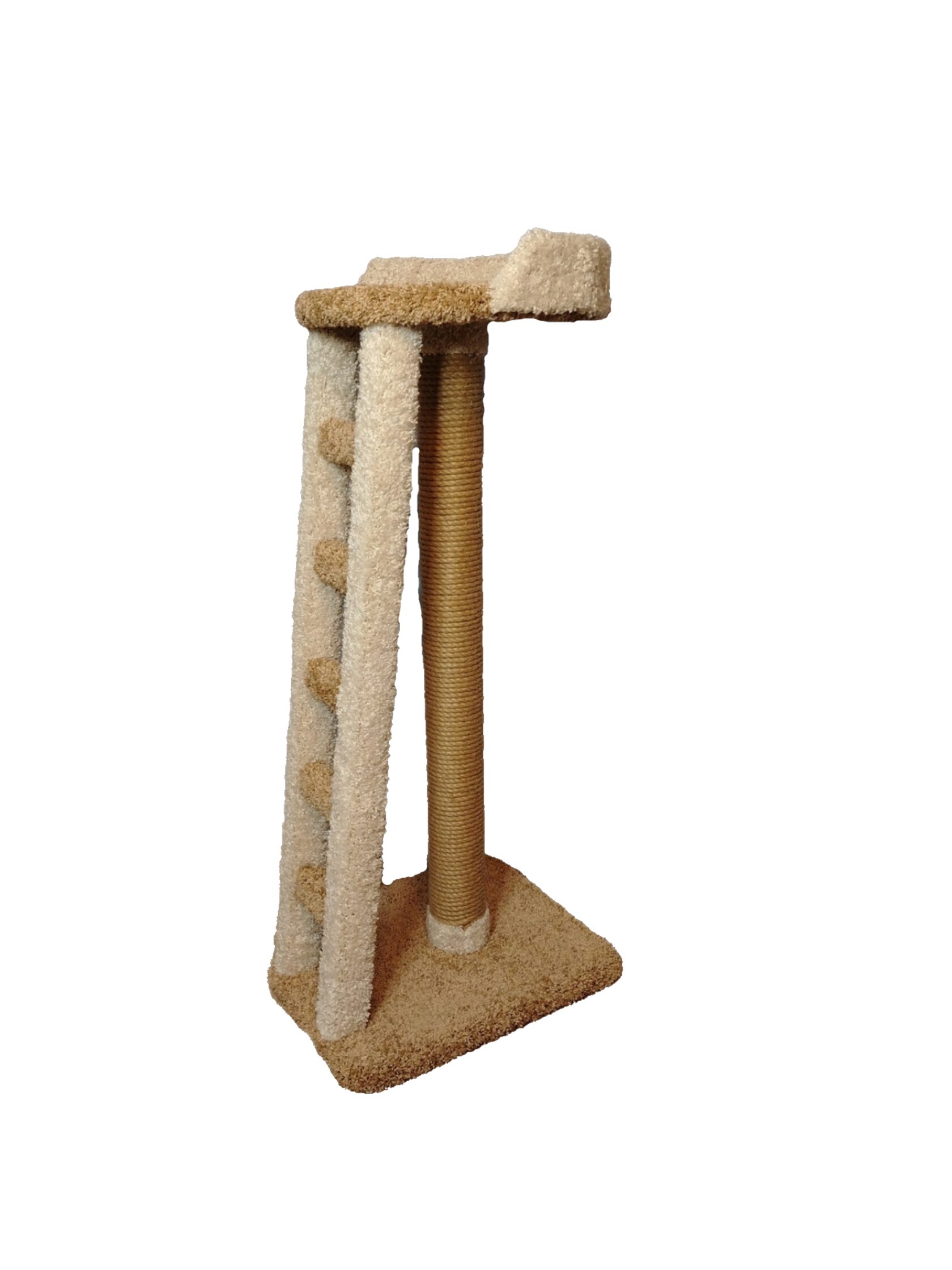 Когтеточка выполнена с одним столбиком, лесенкой и лежанкой с бортиком. Благодаря лесенке, ваш питомец без труда заберется на лежанку, где сможет с удовольствием отдохнуть или с важным видом осмотреть владения. Благодаря бортику, ваш любимчик не упадет во сне. Цвет ковролина и материал каната можно выбрать в момент оформления заказа.